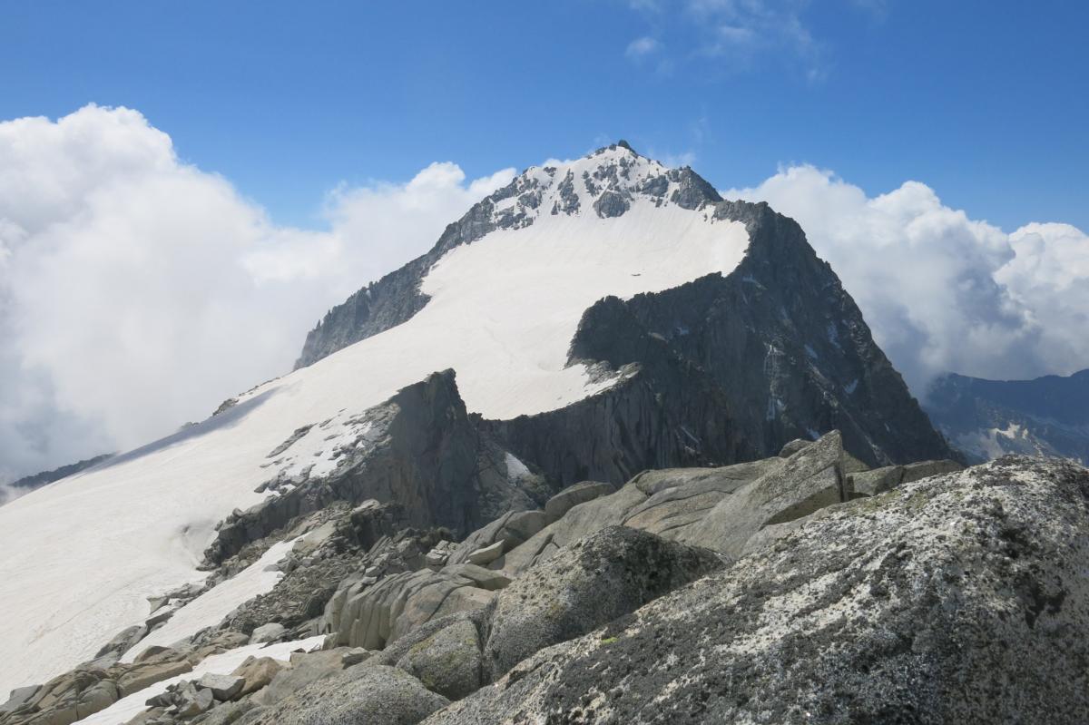 Cima Carè Alto is the most important peak in the southern part of the Adamello Group. It is a climb of great alpine, historical, and scenic interest. The beauty of this great mountain, besides its isolated and dominant position, also comes from the great variety of its slopes, which are in sharp contrast with each other. Many barracks, walkways, and even the wheel of a cableway below the summit testify to the Austrian siege during the White War. The Northwest Ridge (Normal Route) is reached from the Niscli saddle and then crossing the glacier. In recent years, this climb is not recommended late in the season with little snow, while it is preferable to climb the East Ridge (Cerana Route), which is only slightly more difficult but much more direct and safe. For this route, you ascend via the Cannone saddle, where the remains of the artillery piece can still be found. The most difficult section is a 25 m wall of III° grade to reach the ridge.The meeting with the alpine guide takes place at the Care Alto refuge. The ascent to the refuge is done independently along the SAT trail that starts at the end of the Borzago Valley.